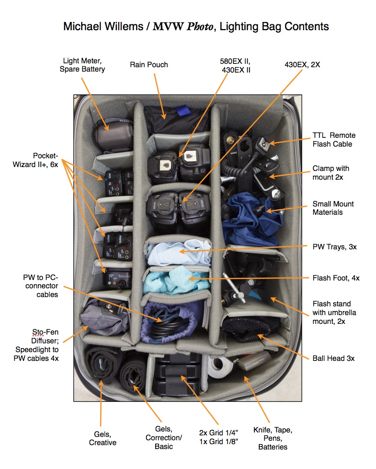Make photos of your flash bags, then annotate these photos (and date them). Now print them. I mean a photo like this – here is my flash bag (yes, that is just my small flash bag):