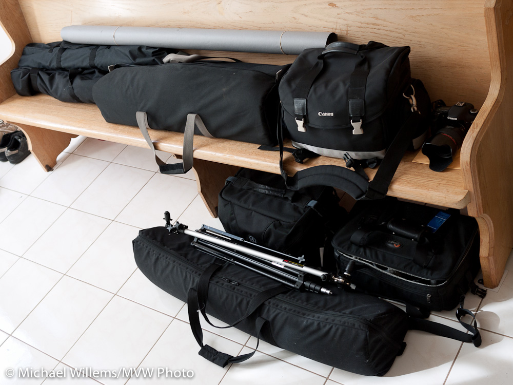 2. Looks like a couple trips. You must be in good shape already if you bring all the gear to big shoots like that, not to mention carrying it between floors in the building!