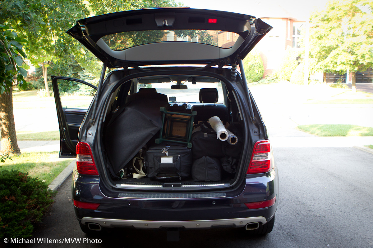 Car full of photo gear, ready for a shoot