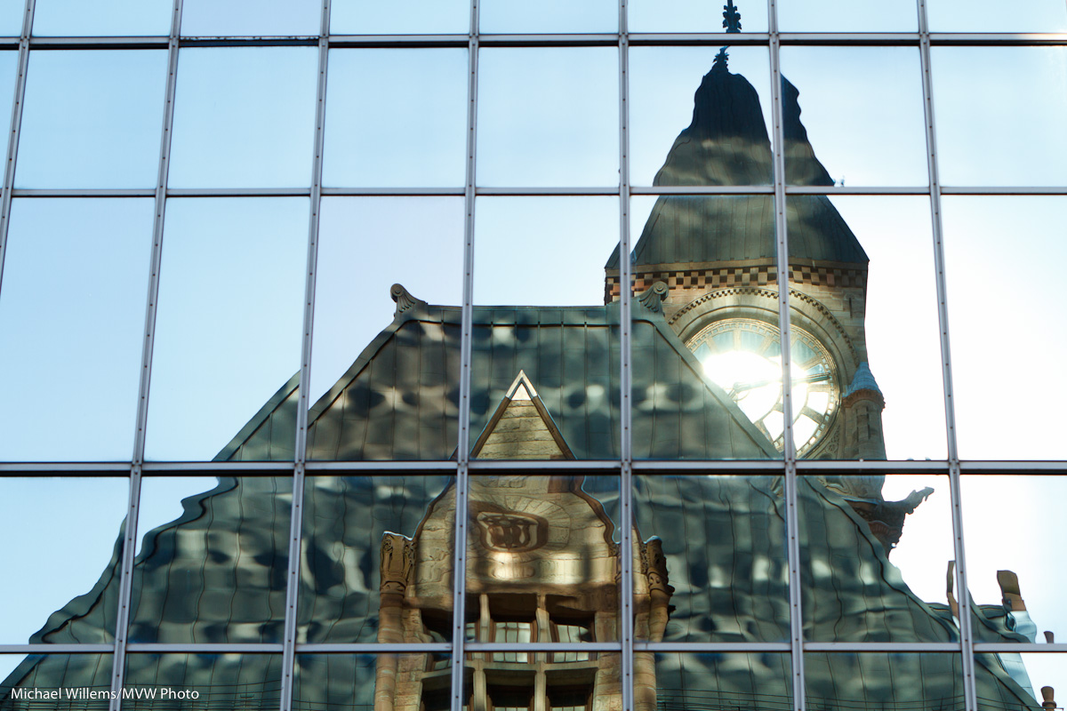 When a juxtaposition is combined with another “interest”, such as “curves”, or here, “reflections”, so much the better.