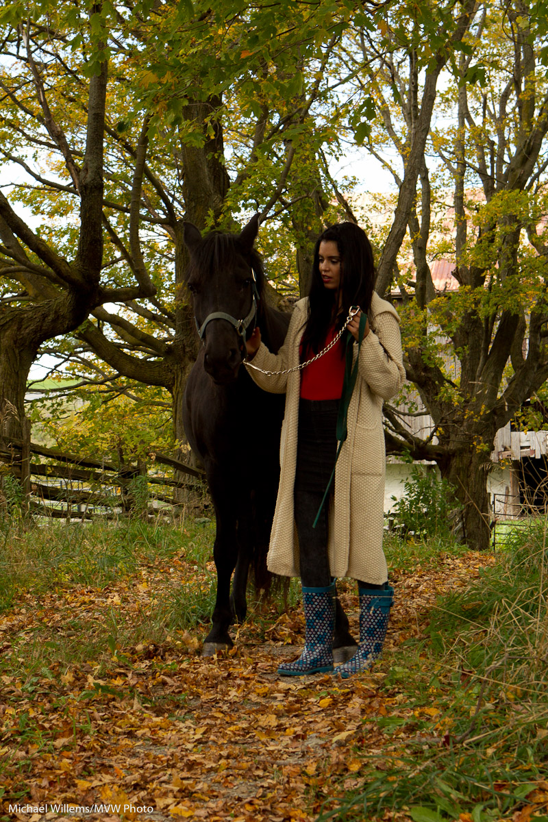 - Small speedlite with Honl grid, to our left – see the sheen on the horse’s coat?