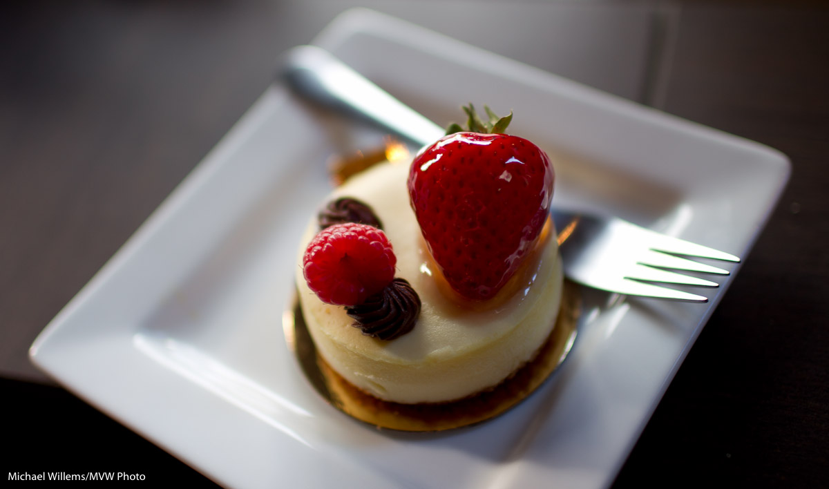 Cheese redux Posted on October 20, 2010 by Michael Willems OK, here is the cheesecake from the other day, revisited! Cheesecake before eating Can you see how I brightened the strawberry ever so slightly?