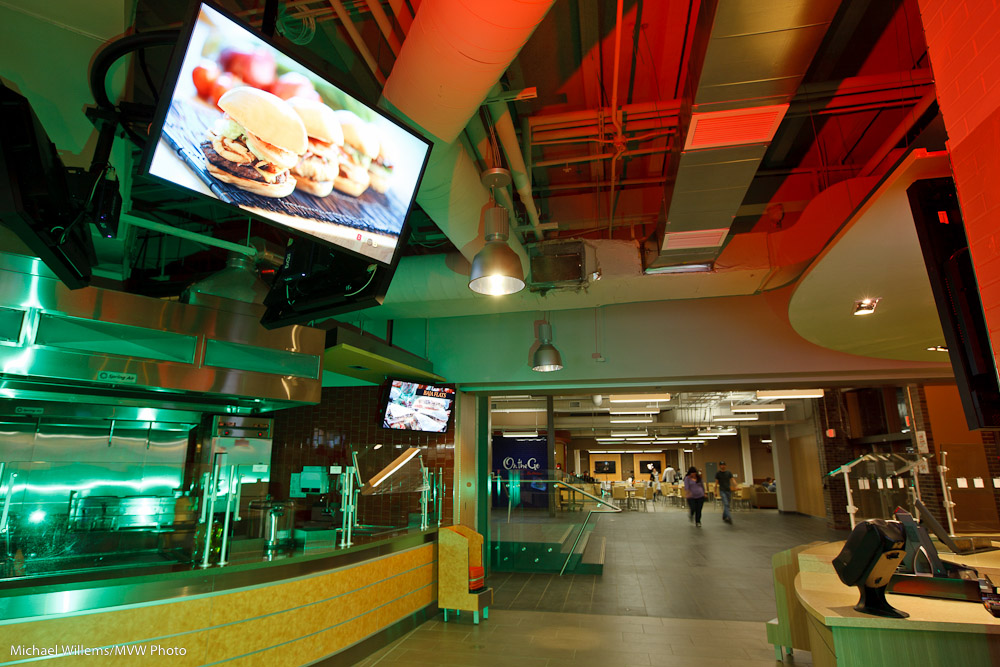 The other night I shot an excellent Digital Signage installation. Innovative screens, powered by EnQii software, in a self-service restaurant.