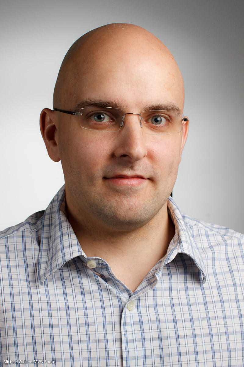 That uses a key light (softbox), a fill light (umbrella), a hair light (Honl snoot), and a background light (Honl Grid).