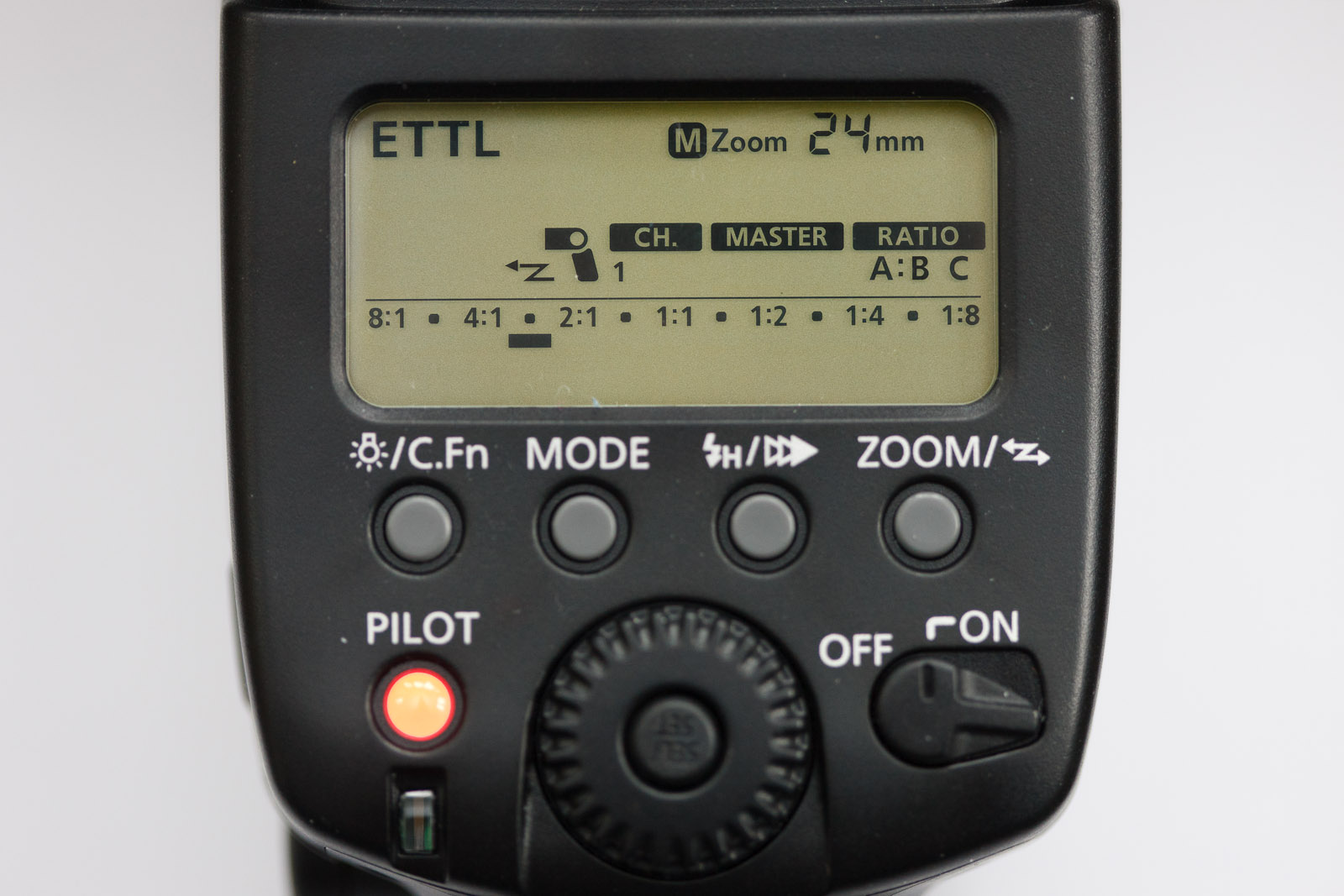 And you do that by setting the on-board flash to off. “–” on a Nikon, in the CLS menu, and just “disable” on a Canon. On the Canon, look, there are no rays coming from the flash head: