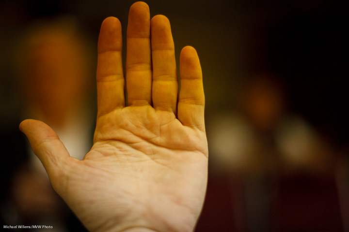 Fortunately, some fluorescents, like the ones in hockey arenas, cycle much more quickly. No problem there. But if you see the issue you are seeing here, try shooting at 1/60-th or 1/30th second in shutter speed priority mode. That should help solve the problem.