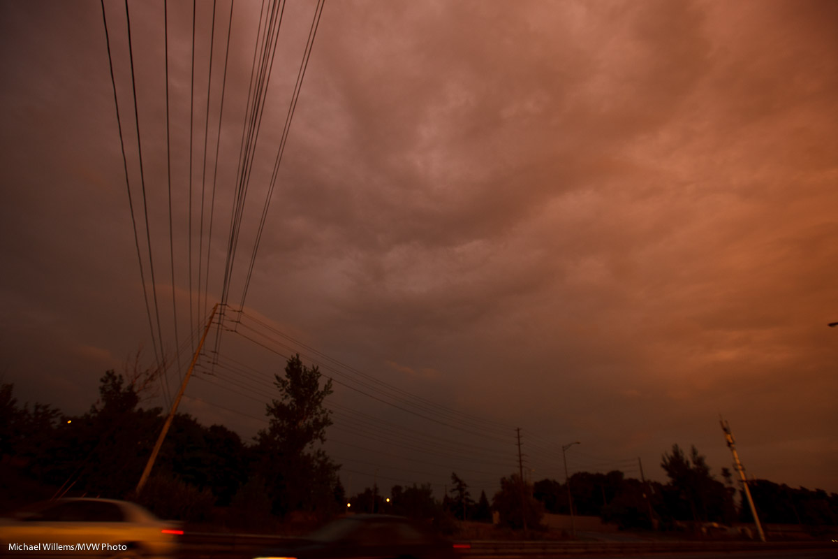 On 20 August 2009 I was driving westward, from Ajax back to Oakville, and around Vaughan I noticed the sky was getting increasingly unusual.
