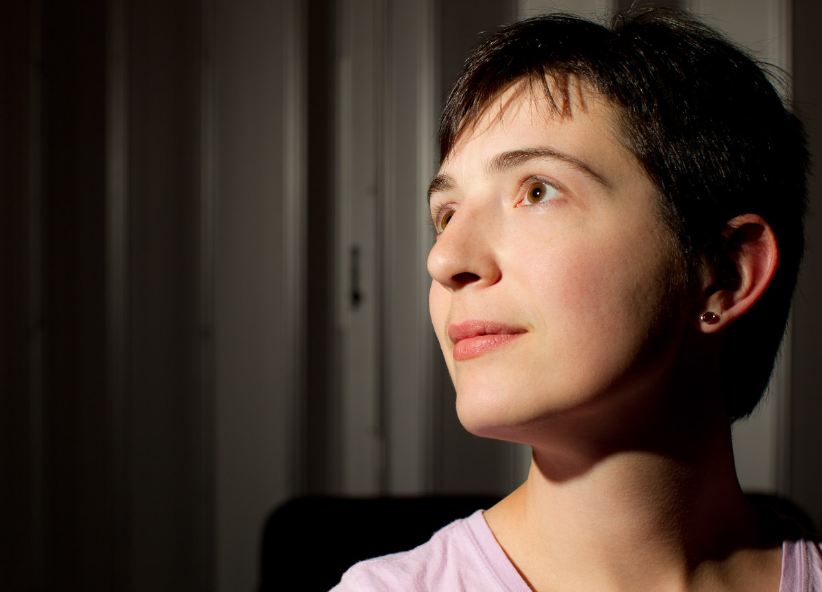 Which, when combined with a second flash camera right to add edge/hair light, gets me this, of another kind student volunteer in last night’s class: