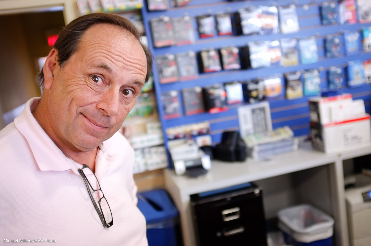 Talking about looks, here’s Rob Buchelt, the manager of the Oakville Henry’s store, shot just now with the X100: