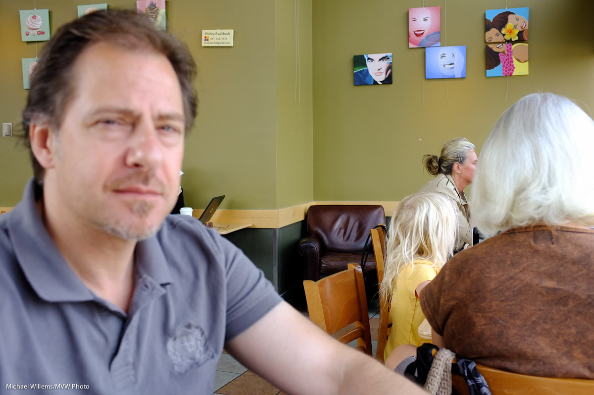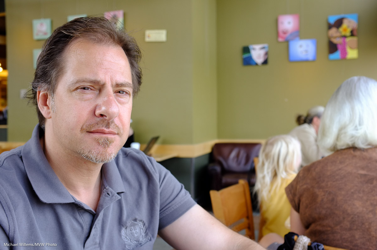 One thing in particular is worth mentioning. When you focus closely, the camera often misses – and yet it indicates it is focusing. So watch me as I focus on one of Canada’s most talented photographers, Joseph Marranca, Yes, even taking into account parallax I am focusing on him, not on the background, with a small enough focus point to not hit the background at all, and I am on a contrasting area of his face – and yet it completely misses: