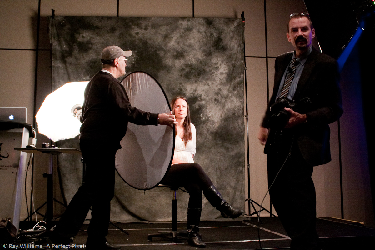 When you do a studio portrait, you usually want to use your portrait lighting alone – the room light should not interfere. Room light should be invisible.