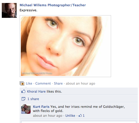 When I post an image on my Facebook page at http://www.facebook.com/cameratraining/ I see what people like, and comment on: