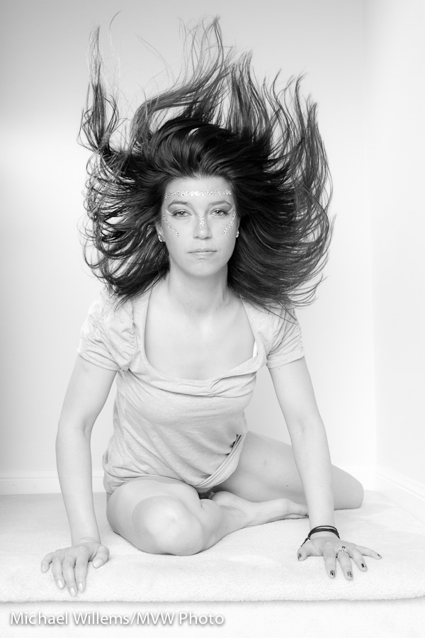 When shooting long-haired people using flash, for effect try to have them throw their hair every now and then and shoot when their hair is in the air.