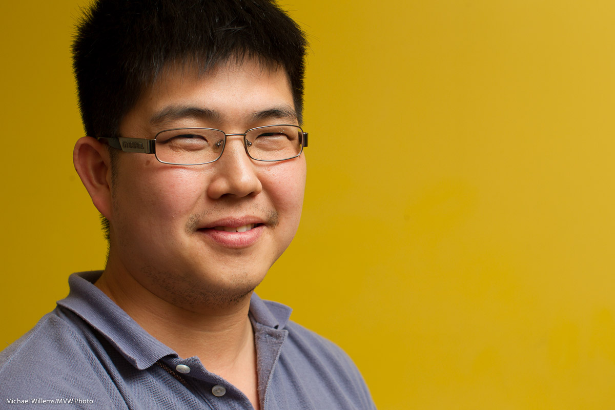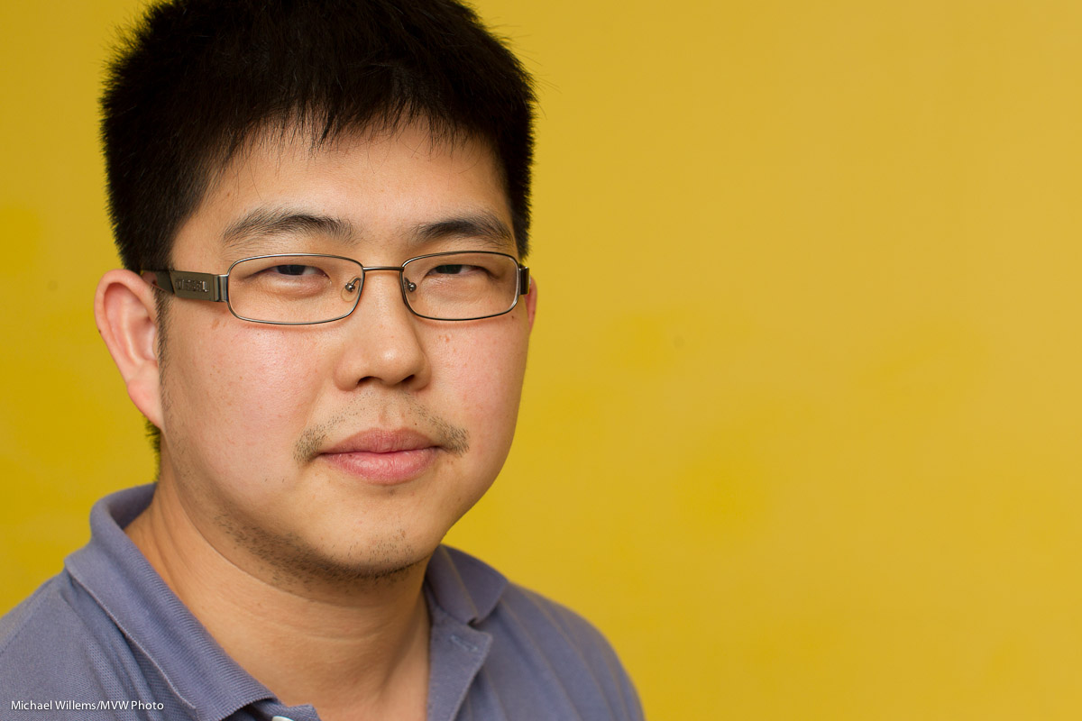 So if during a custom workshop at Seneca College I want to light up Seneca student and reader Danny Lee with lighting that compliments a man and provides some modeling, I want light from the side – so I aim my flash behind me to the right: