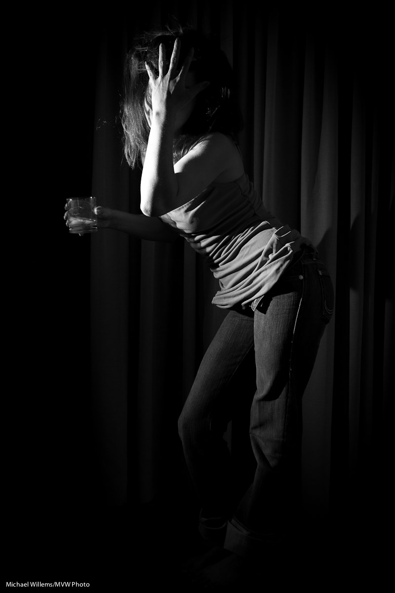 You use a grid on a flash (such as the Honlphoto 1/4″ grid I use) to restrict the light a flash throws. Like in this chiaroscuro picture with a flash on our left that I just took: