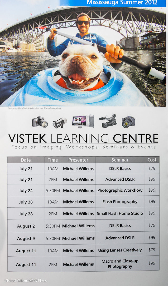 My Vistek Training Schedule Posted on July 22, 2012 by Michael Willems For those if you interested: Here is my Vistek training schedule. Interested in learning? Then sign up, here!