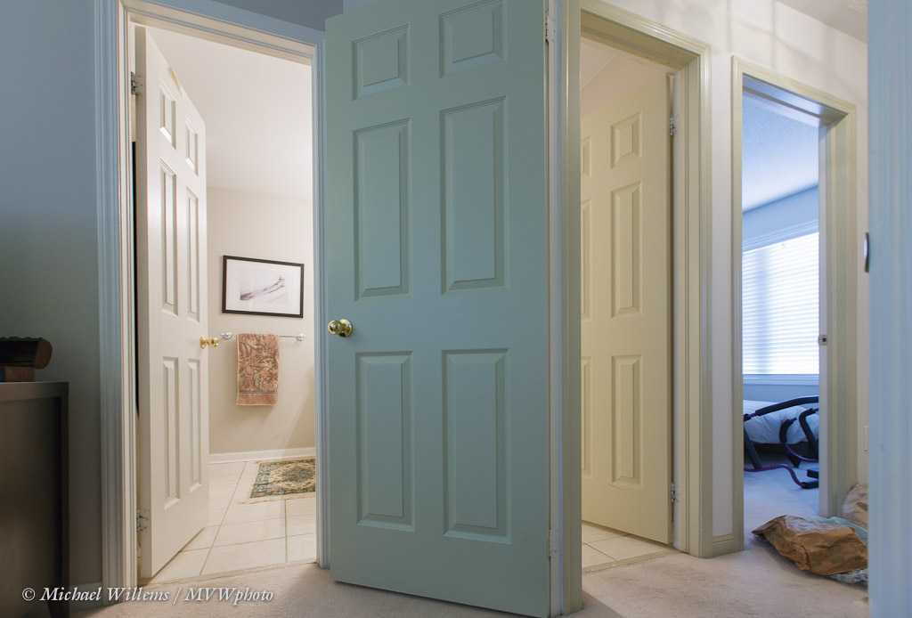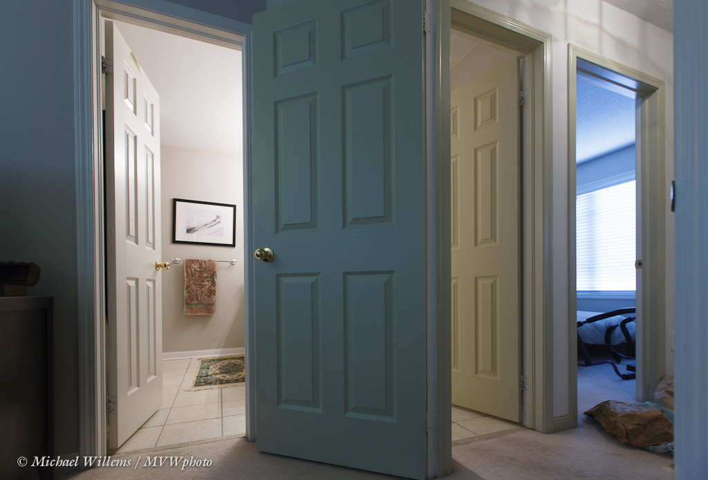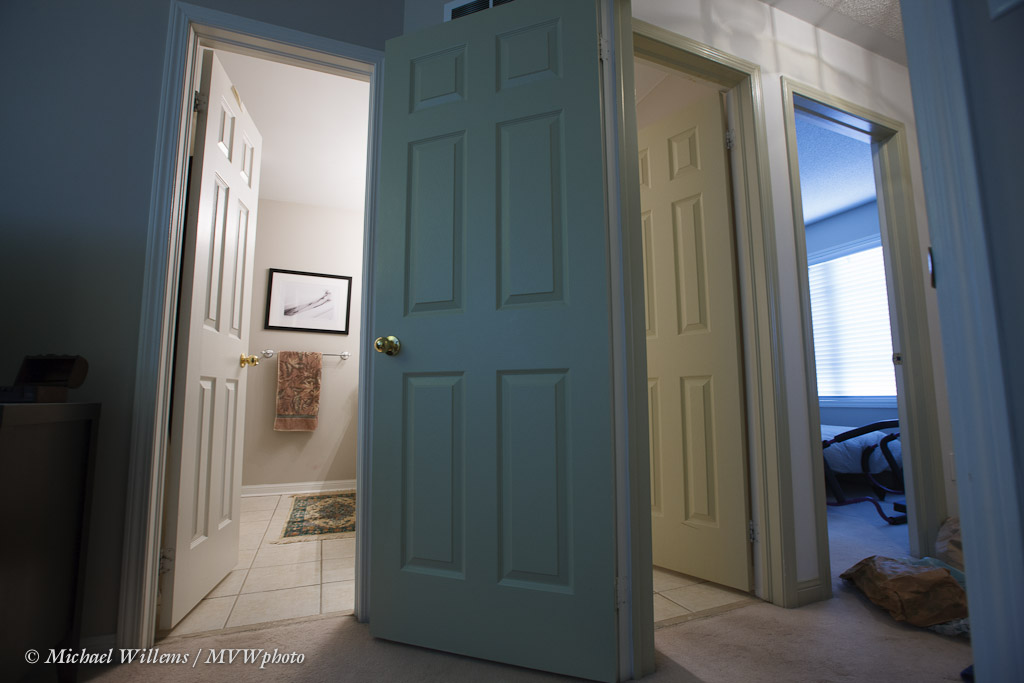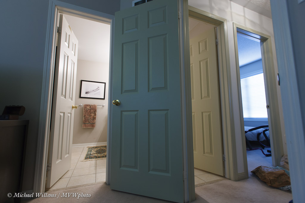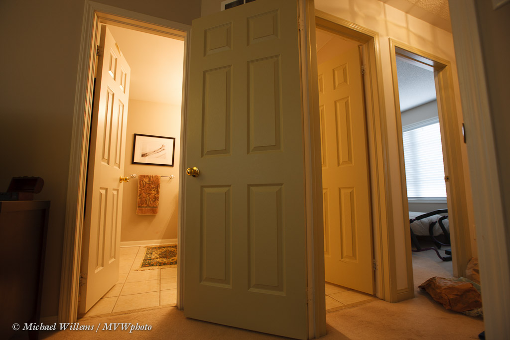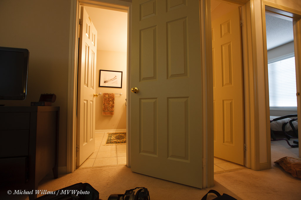 Let’s say that for some reason (you are testing a lens perhaps), you want a picture of your bathroom and hallway, using a very wide-angle lens. Like this:
