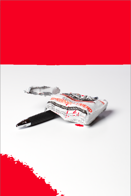 Alas, by default Lightroom 4 protects me against myself. It stops me from blowing out the background and if there is any detail left in the background, I get it back, whether I like it or not! So the red areas will not show.