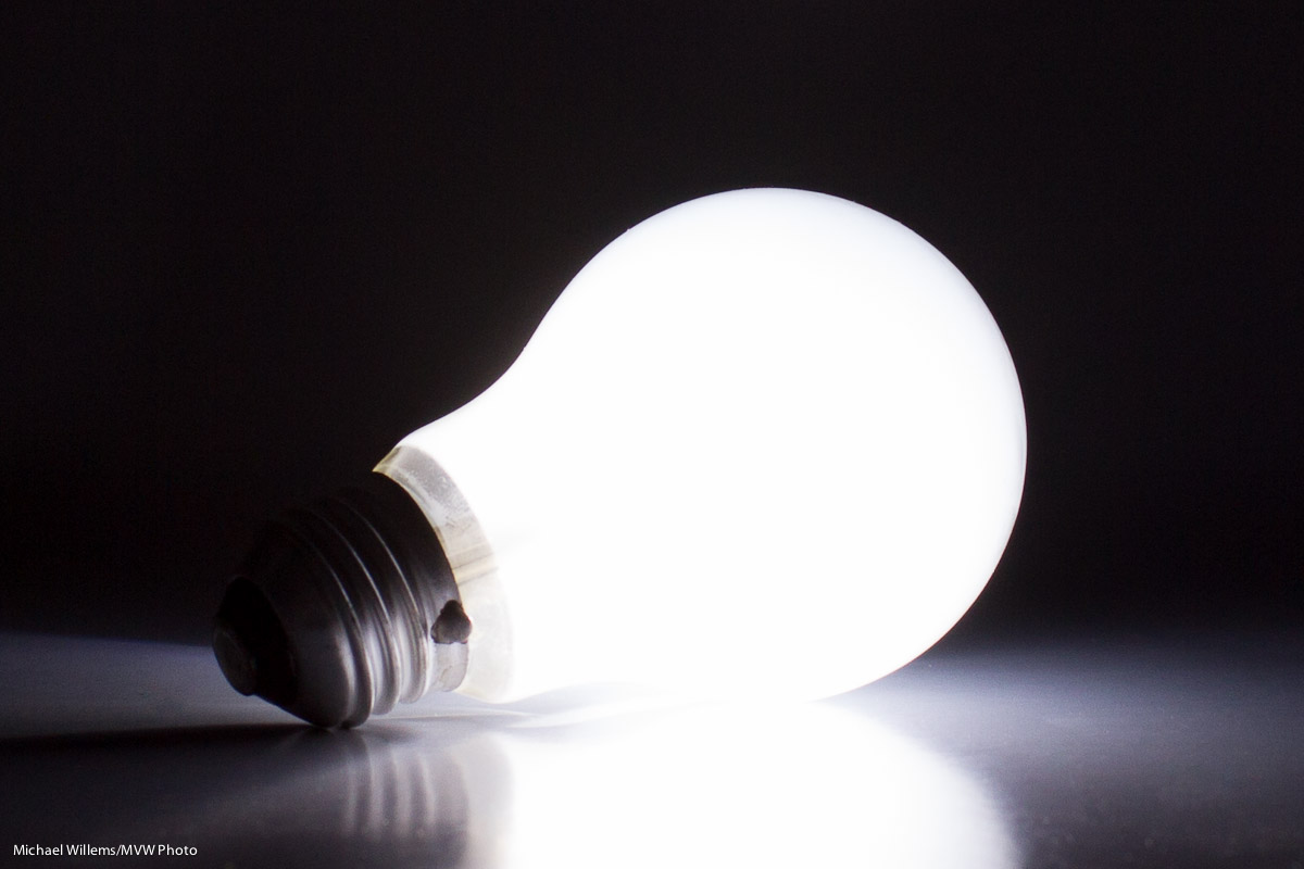 I used an LED flashlight behind the (frosted) bulb. That makes it look like the bulb itself is lit. 6 second exposure, 200 ISO, f/5.6.