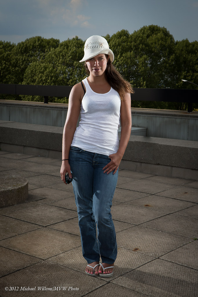 1. Two lightstands with four speedlights driven by Pocketwizards: one right, one left, slightly behind the model. No modifiers.