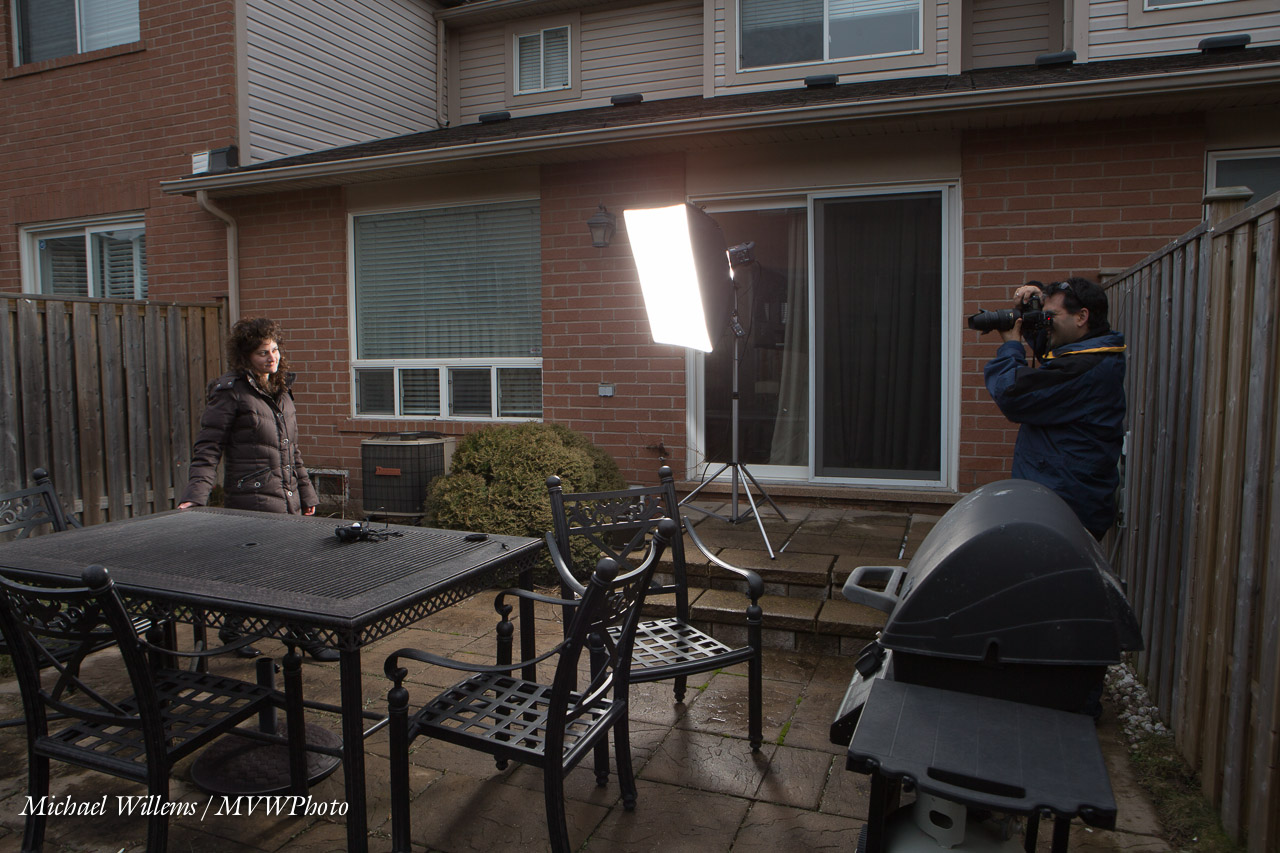 - Now I add my flash. Off-camera flash, preferably. I used a softbox on our right.