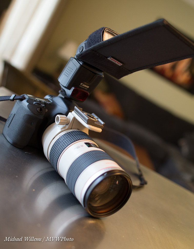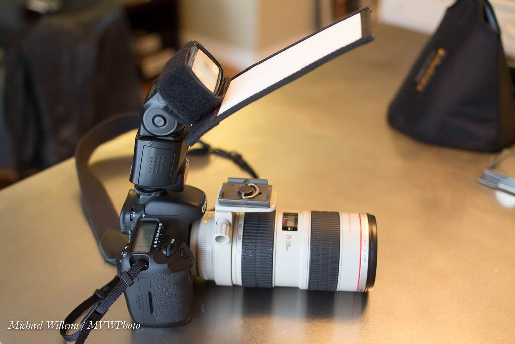 But what when you are far, as when using a telephoto lens? Then the “virtual umbrella” may be in front of you. And aiming your flash forward is a no-no, since the subject will be lit in part by direct light.
