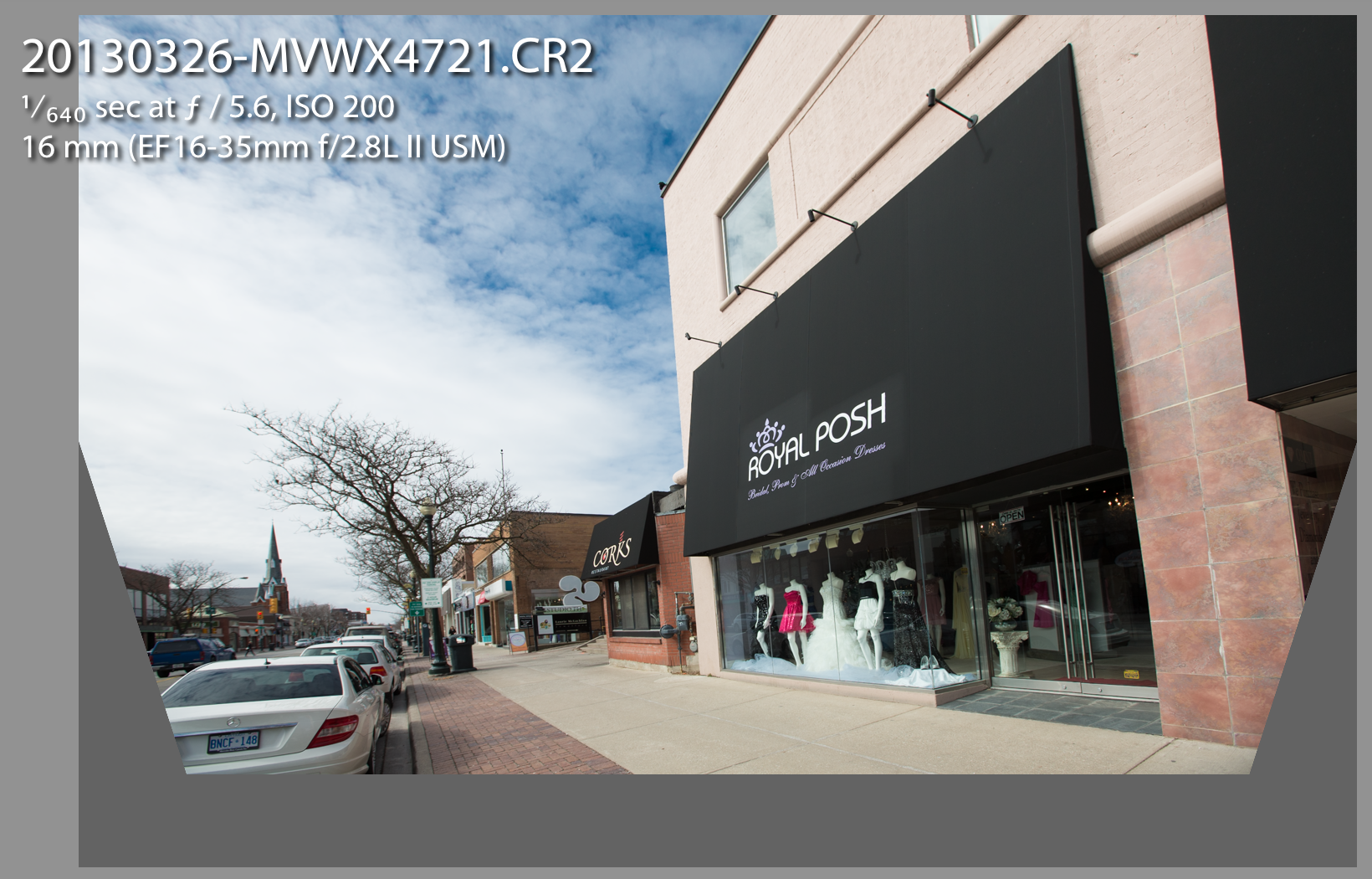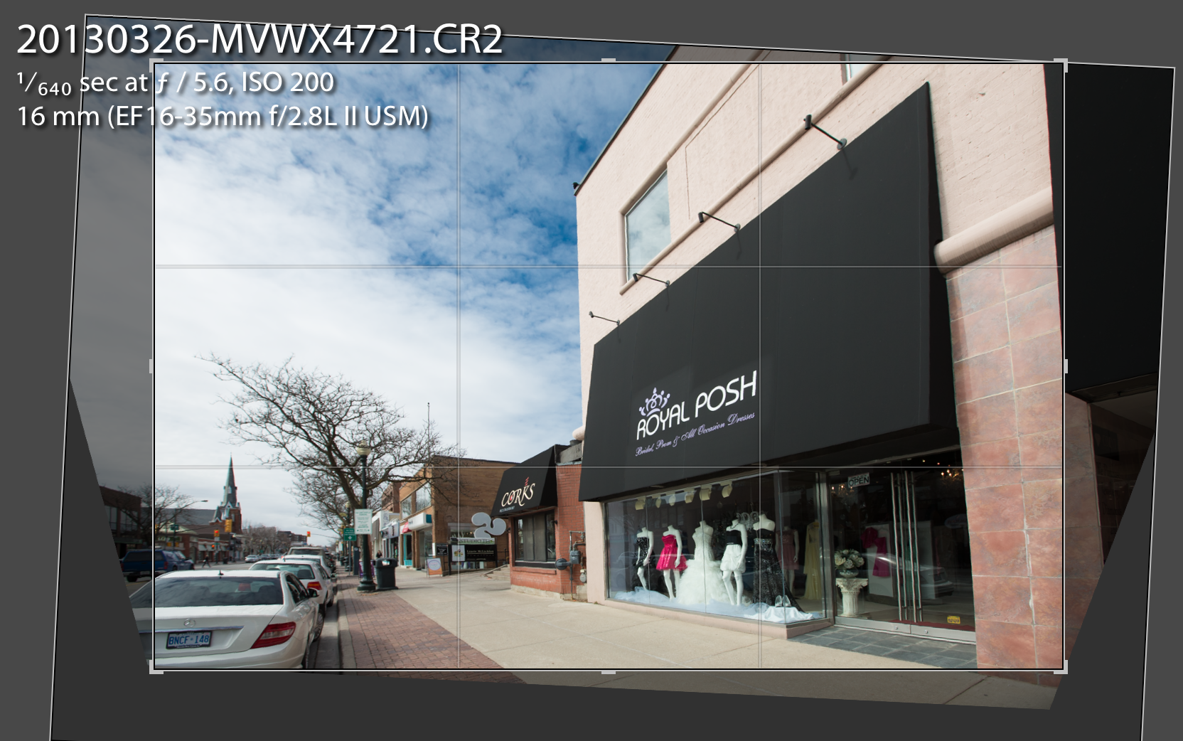 This gives you a corrected view, from which you then crop the excess: