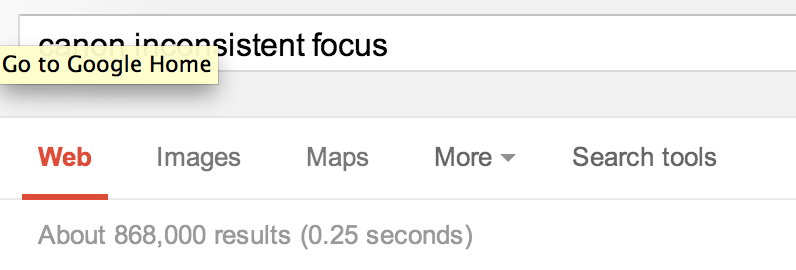 And in my case, I believe my concerns are valid. Search for “Canon Inconsistent Focus”: