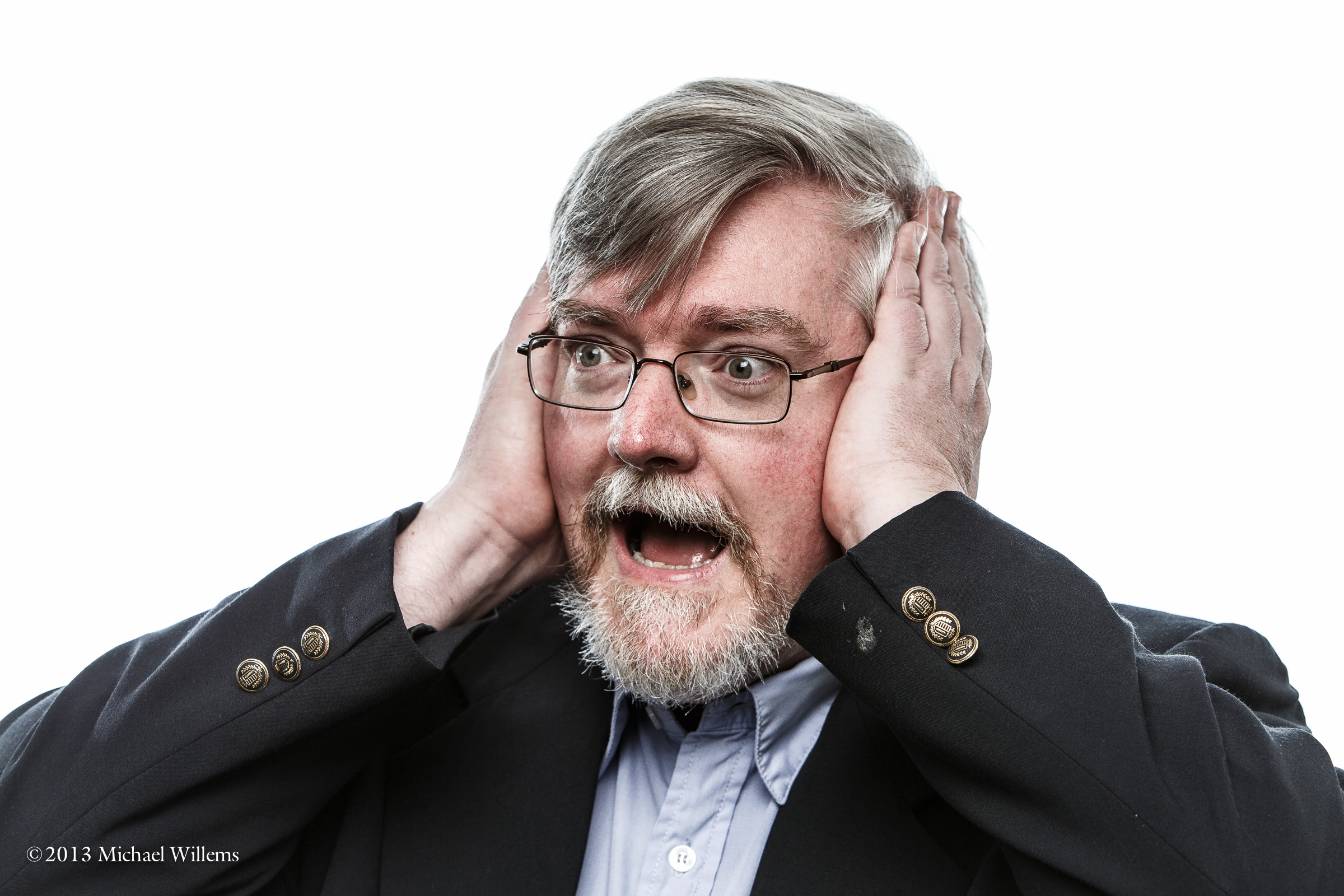 This was done with three lights: One with softbox where I am., and two feathered flashes, unmodified, on each side, lighting both backdrop and side of his face. Again, a simple setup, although it took a few minutes work to set up. Slifght clariti enhacement to give it more pop, and slight desaturate to meet the web spects that this image was taken for.