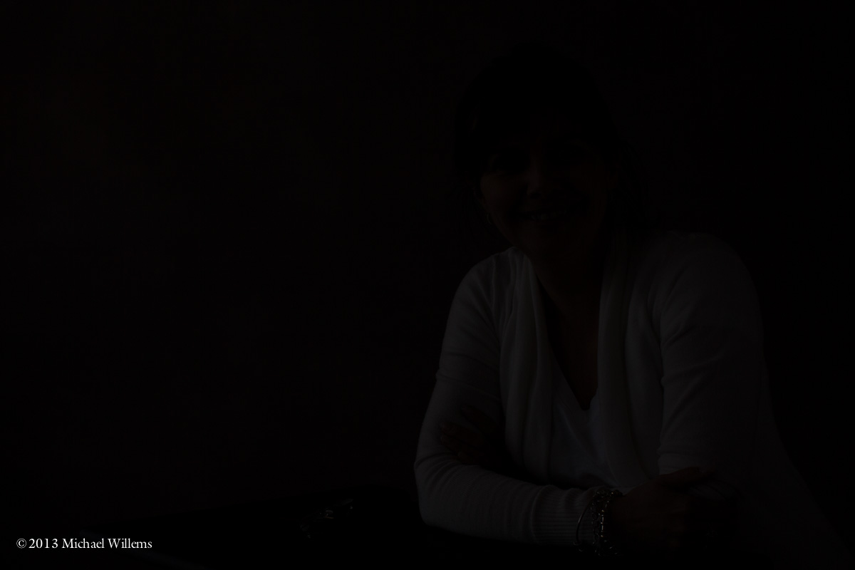 First, set the camera to standard studio settings. Like 1/125th to 1/200th second, f/8, 100 ISO. This is designed to make ambient light go away. The studio was a bright room – big windows with only light sheer curtains. And yet with those settings, it looked like this in photos: