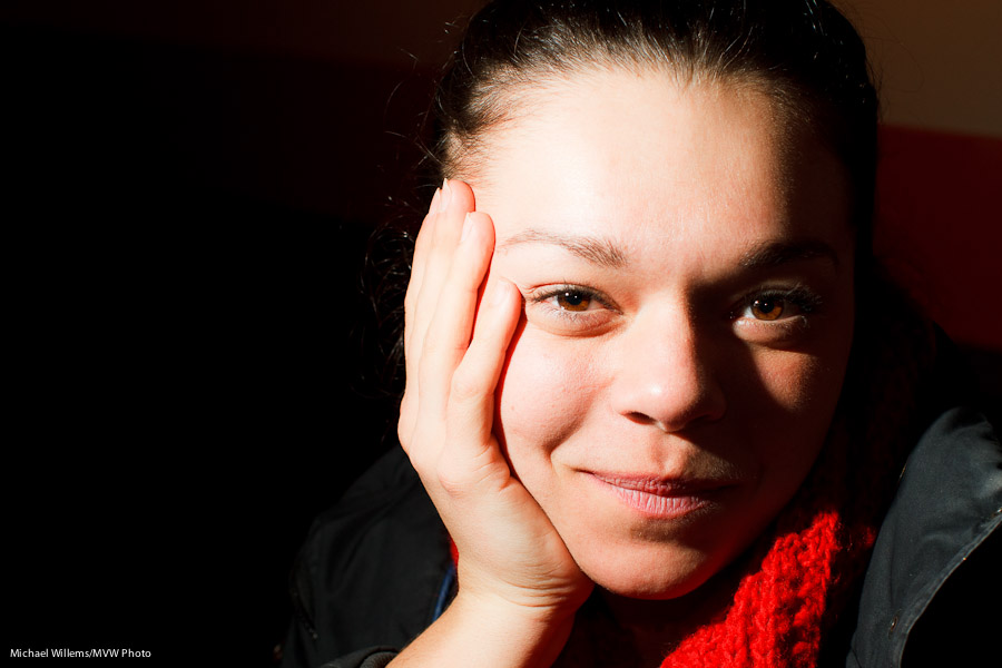 - The flash is a single 580EX II speedlight, on camera but bounced 45 degrees behind me, slightly to my right to get light onto the subject’s face.