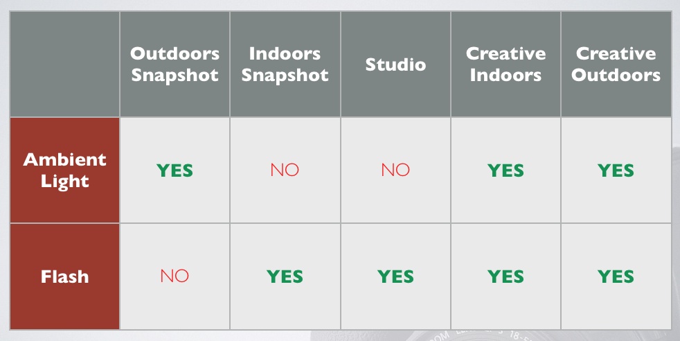 - When it is mixed, I set the ambient so that is is the right level compared to the flash.