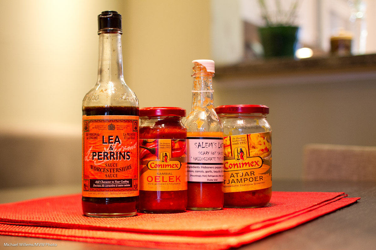I mean this. Let’s look at a picture of some of the spices and condiments I use when cooking: