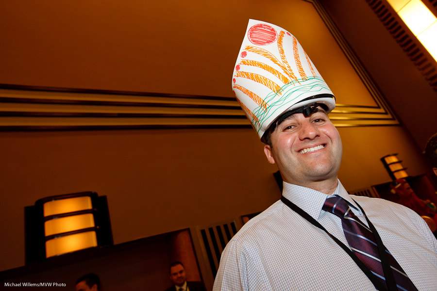 Take this picture, taken with a wide angle 16-35mm lens at 800 ISO, 1/40 sec, f/4, with bounce flash aimed behind me. . Attentive readers may recognize the Willems 400/40/4 formula in that, modified slightly (800 ISO instead of 400) because it was so non-reflective.
