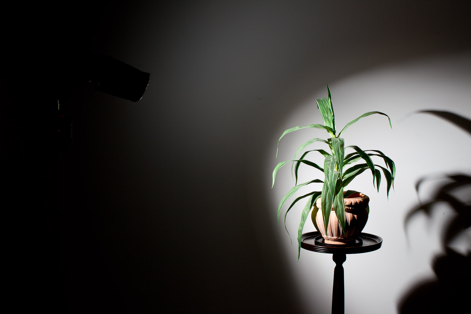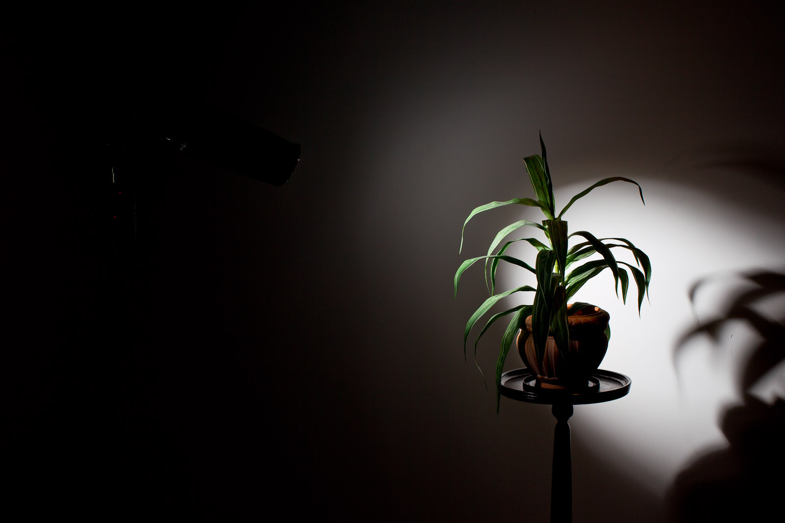 Next: a great modifier is the softbox. In the next photo, I used a Honlphoto 8″ Traveller8 portable softbox off camera. The shadow is under my control: bring the flash closer and it softens, and the flash’s position determines where the shadow goes. Now that nasty shadow becomes a creative tool under your control.