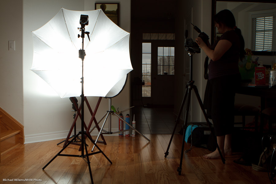 - Using flashes: Use off-camera flash, modified by softboxes or umbrellas; or use an on-camera flash by bouncing it off a white ceiling/wall behind you. Use manual exposure mode. 1/125 sec.