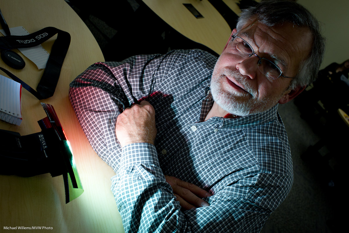 Today, for me, with two flashes on each side of the subject, this was f/13. Here’s the setup: