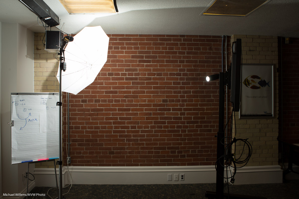 Studio shooting is very simple. This, today at my Vistek flash course, took but a moment or two to set up: a studio, using just ordinary speedlights and a few accessories: